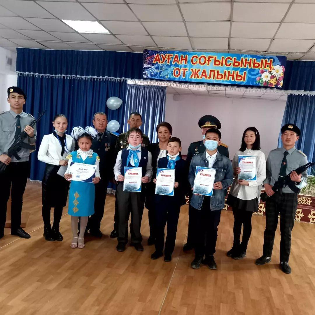 СШ №55 » Ауған соғысы ардагерлерімен кездесу арқылы сол соғыс жайлы мағлұматтар алып,оқушылардың қабілеттерін кеңейту,тарихи оқиға туралы мәлімет беру, ұлтжандылыққа тәрбиелеу мақсатында #55орта мектебінде "Ауғанның от жалыны"атты мерекелік іс-шара өткізілді