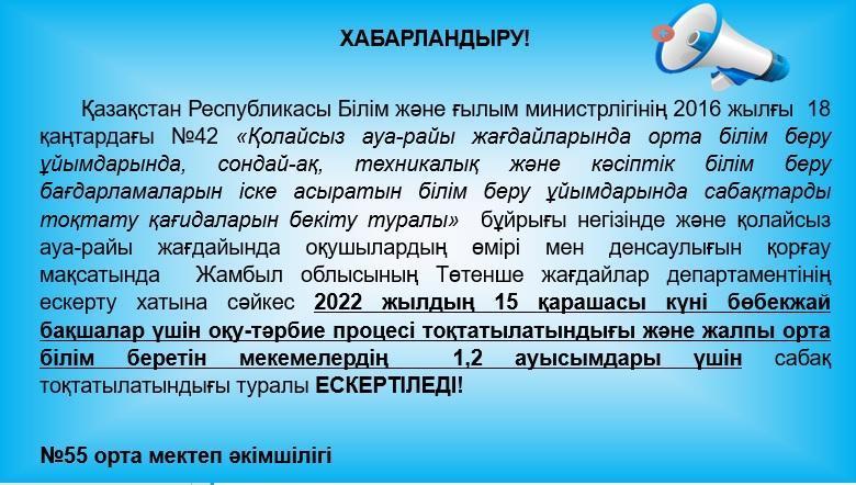 ХАБАРЛАНДЫРУ » СШ №55