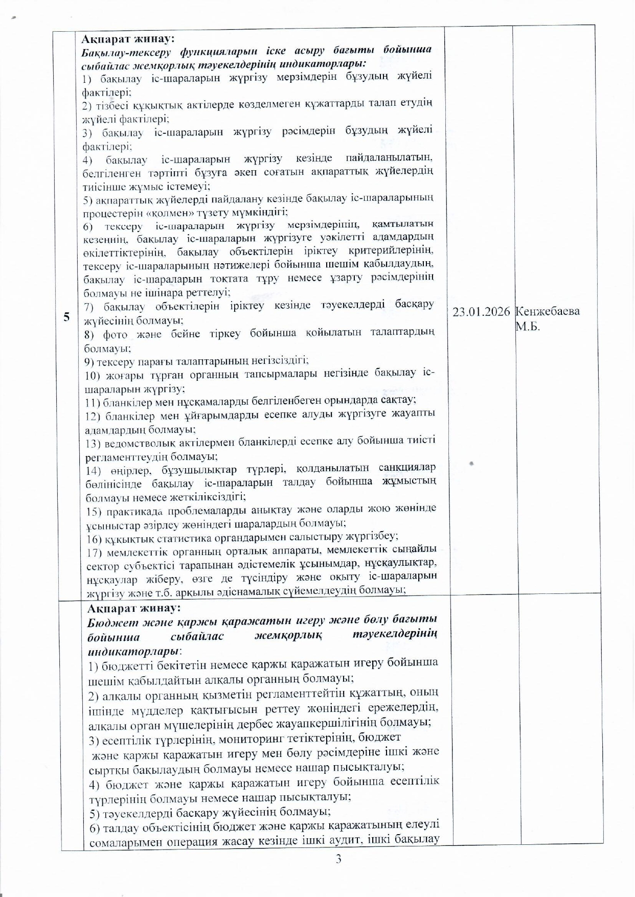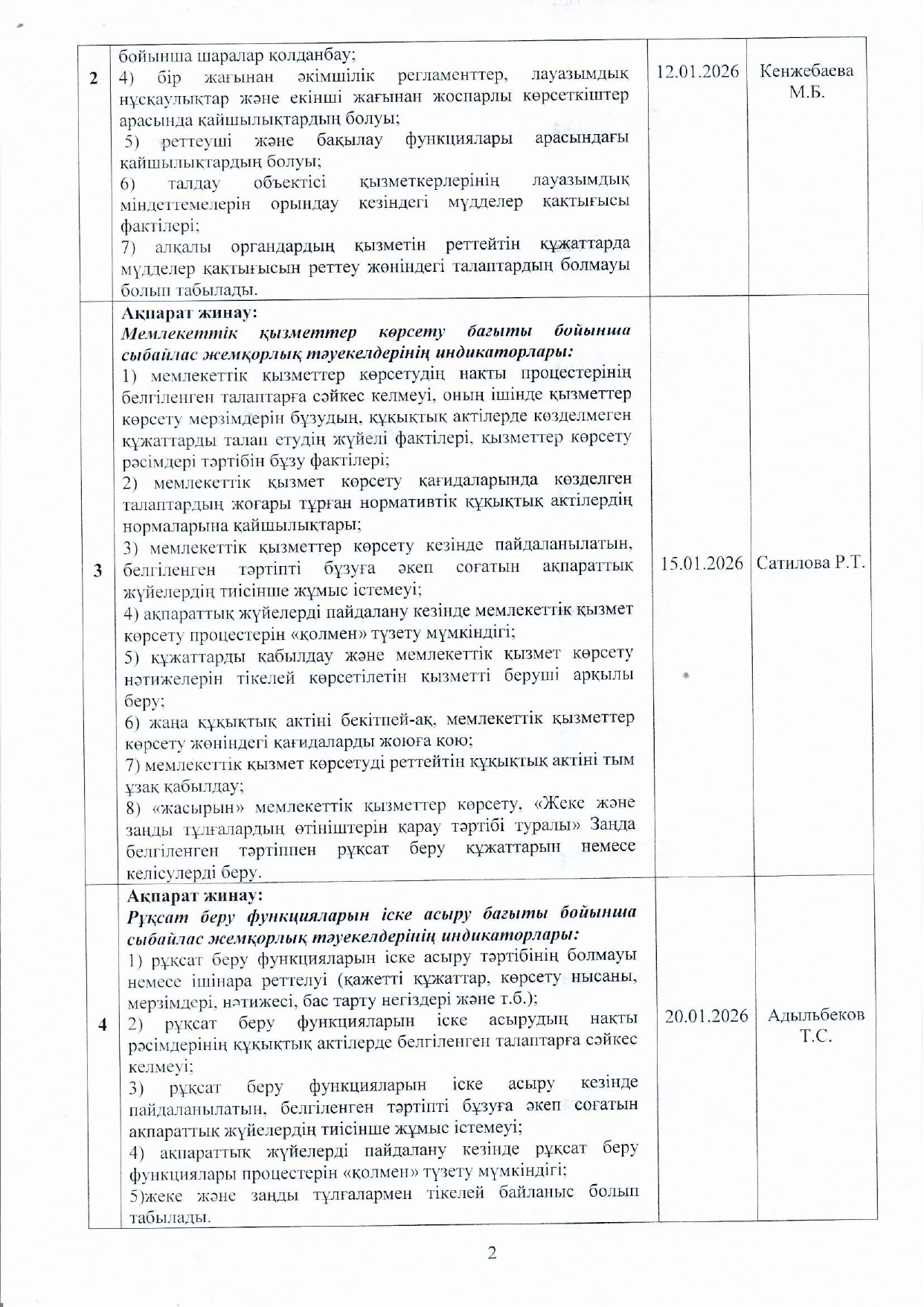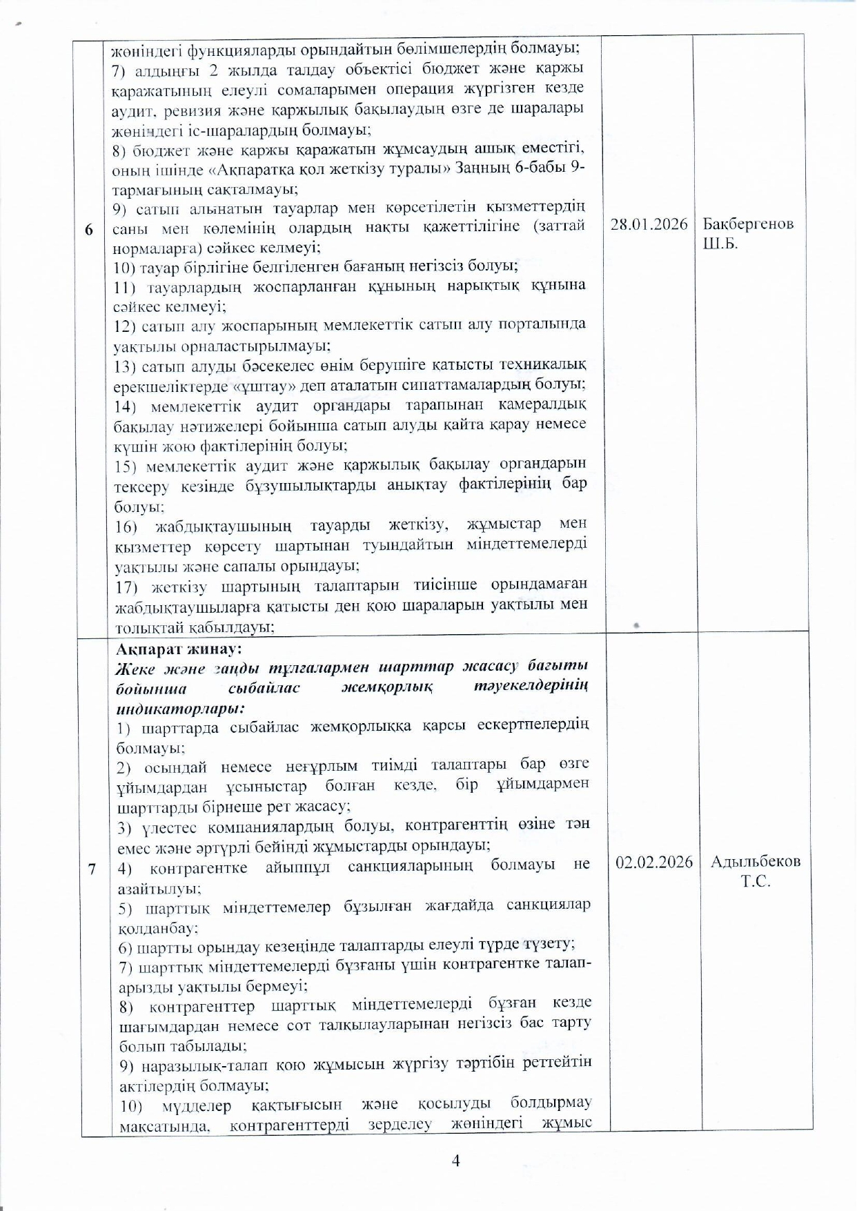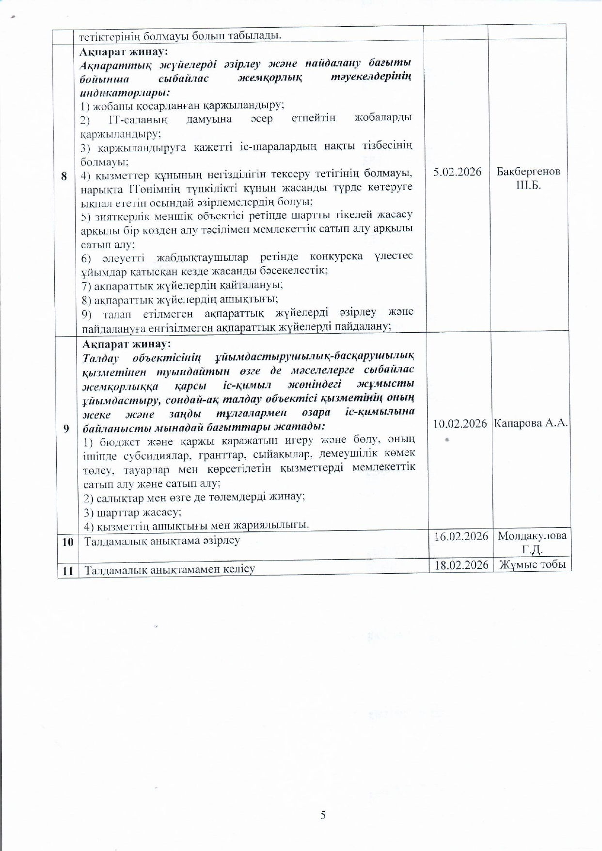 05 январь 2026 0 1 2 3 4 5 Сыбайлас жемқорлық тәуекелдеріне ішкі талдау жүргізу жөніндегі жұмыс жоспары