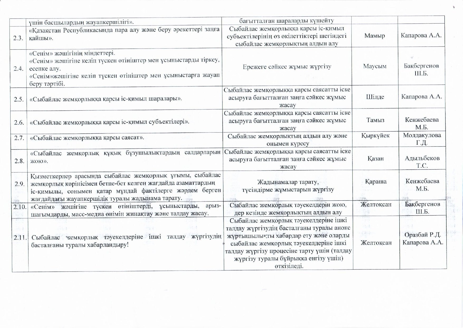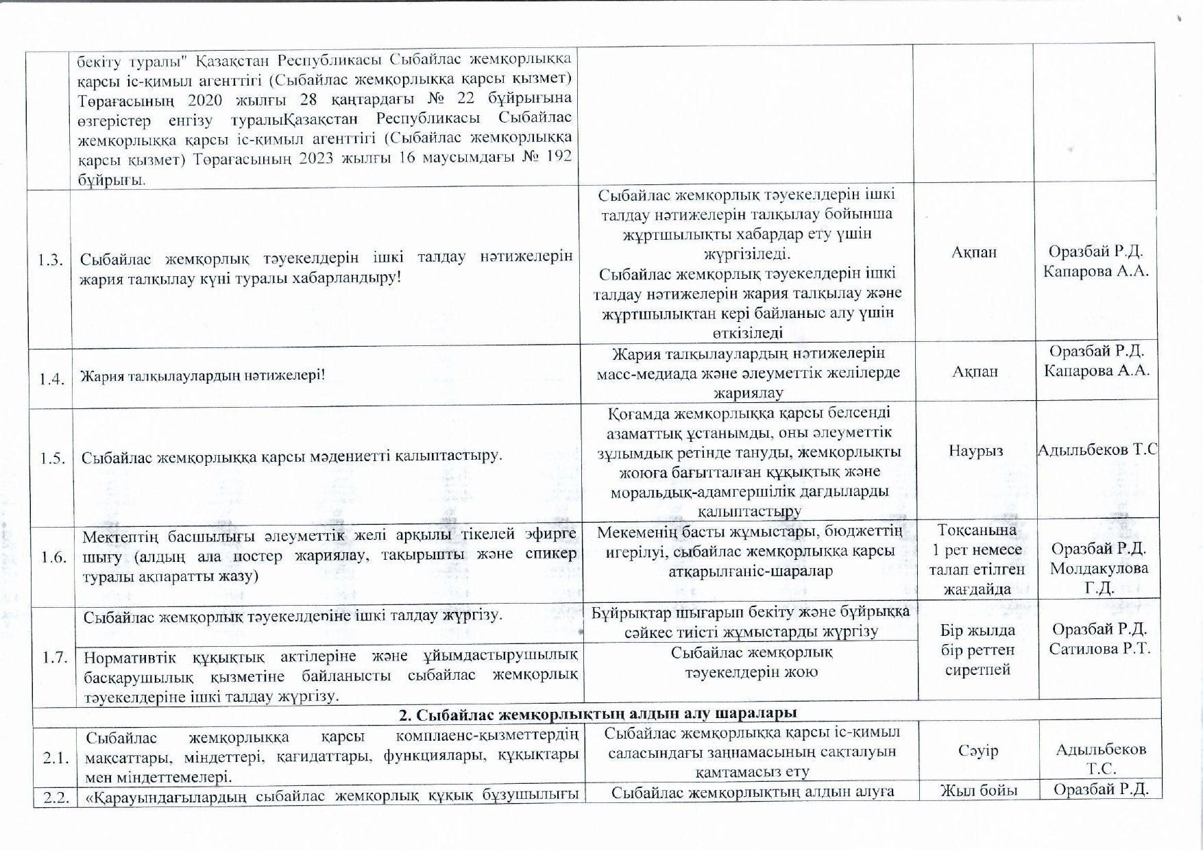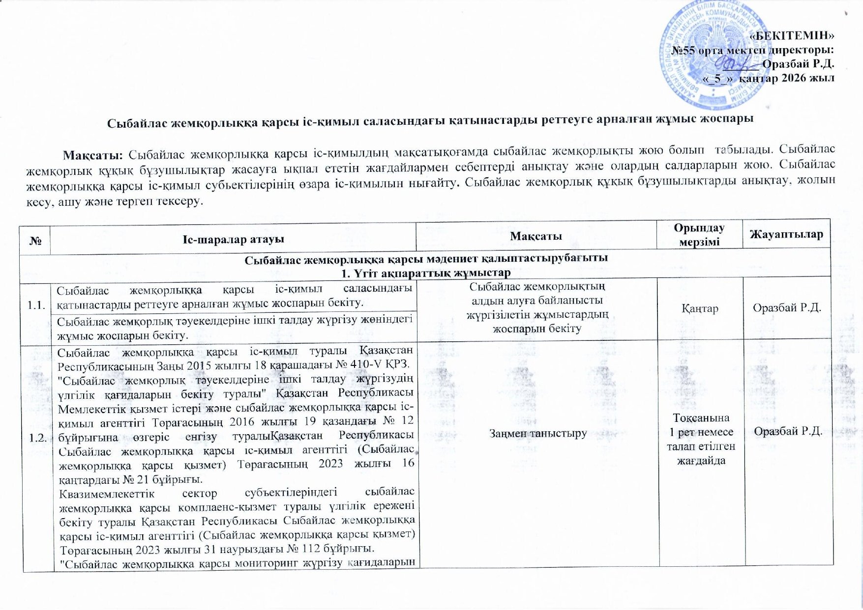 05 январь 2026 0 1 2 3 4 5 Сыбайлас жемқорлыққа қарсы іс-қимыл саласындағы қатынастарды реттеуге арналған жұмыс жоспары