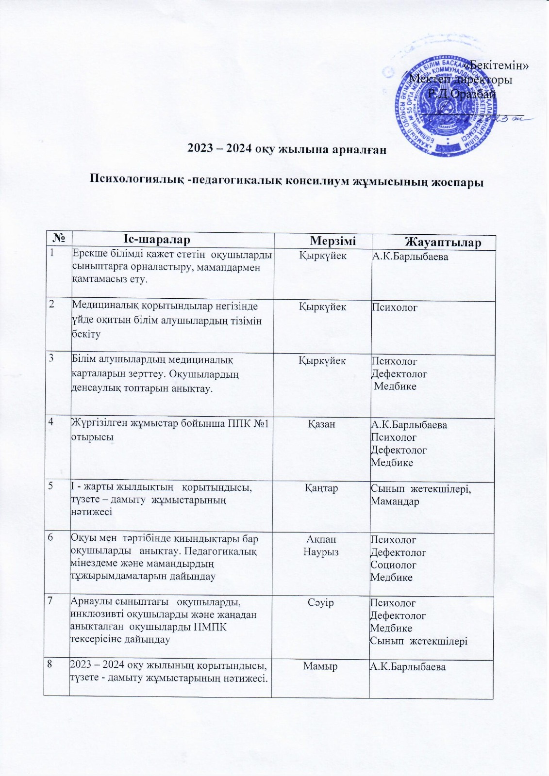 04 сентябрь 2023 0 1 2 3 4 5 2023-2024 оқу жылына арналған Психологиялық-педагогикалық жұмысының жоспары