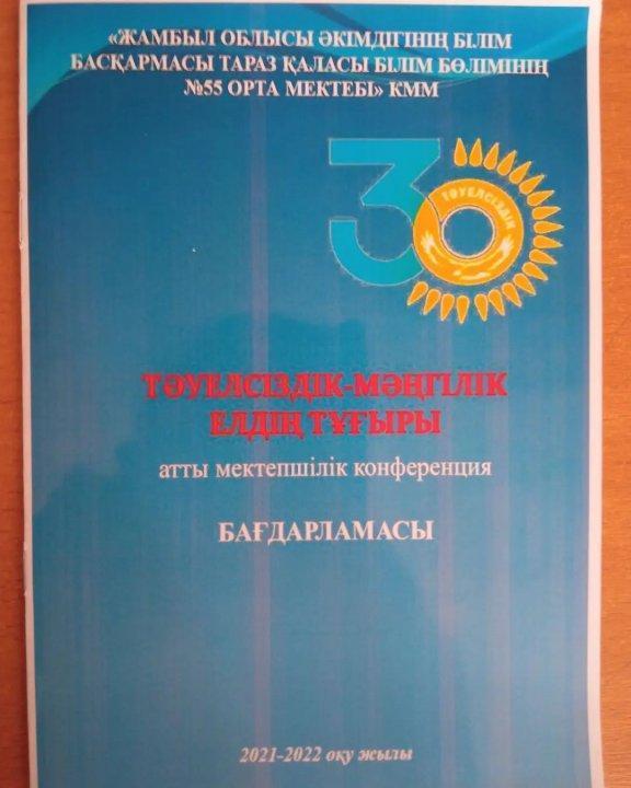 Қазақстан Республикасының Тәуелсіздігіне 30жыл толуына байланысты 7-10 сыныптар аралығында конференция өтті Тақырыбы: «Тәуелсіздік -Мәңгілік елдің тұғыры» оқушылар өте белсенді қатысты Конференция өте жоғары деңгейде өтті » СШ №55