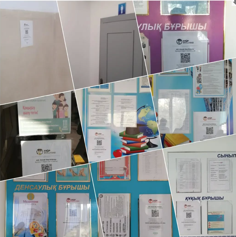 №55 орта мектебінде "Кел, дос болайық!" акция аясында: тұрмыстық зорлық-зомбылық тың, буллингтің алдын-алу мақсатында, әр оқу бөлмелерінде, мектебіміздің дәлізінде, әжетханаларында, спортзалда, асханада "stop bulling" QR - кодтар бар парақшалары қайта жаңартылып ілінді.