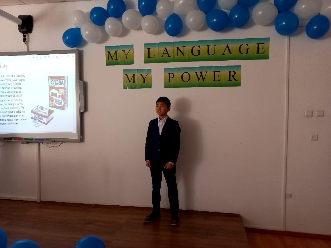 "Халықаралық Ана тілі күні" мерекесіне орай оқушылардың өз тілін құрметтей отыра, ағылшын тілін жетік меңгертіп, ауызекі тілде сөйлеу қабілетін дамыту мақсатында ағылшын тілі пән бірлестігінің ұйымдастыруымен "My language-My power" атты мәнерлеп оқу байқауы өткізілді.
