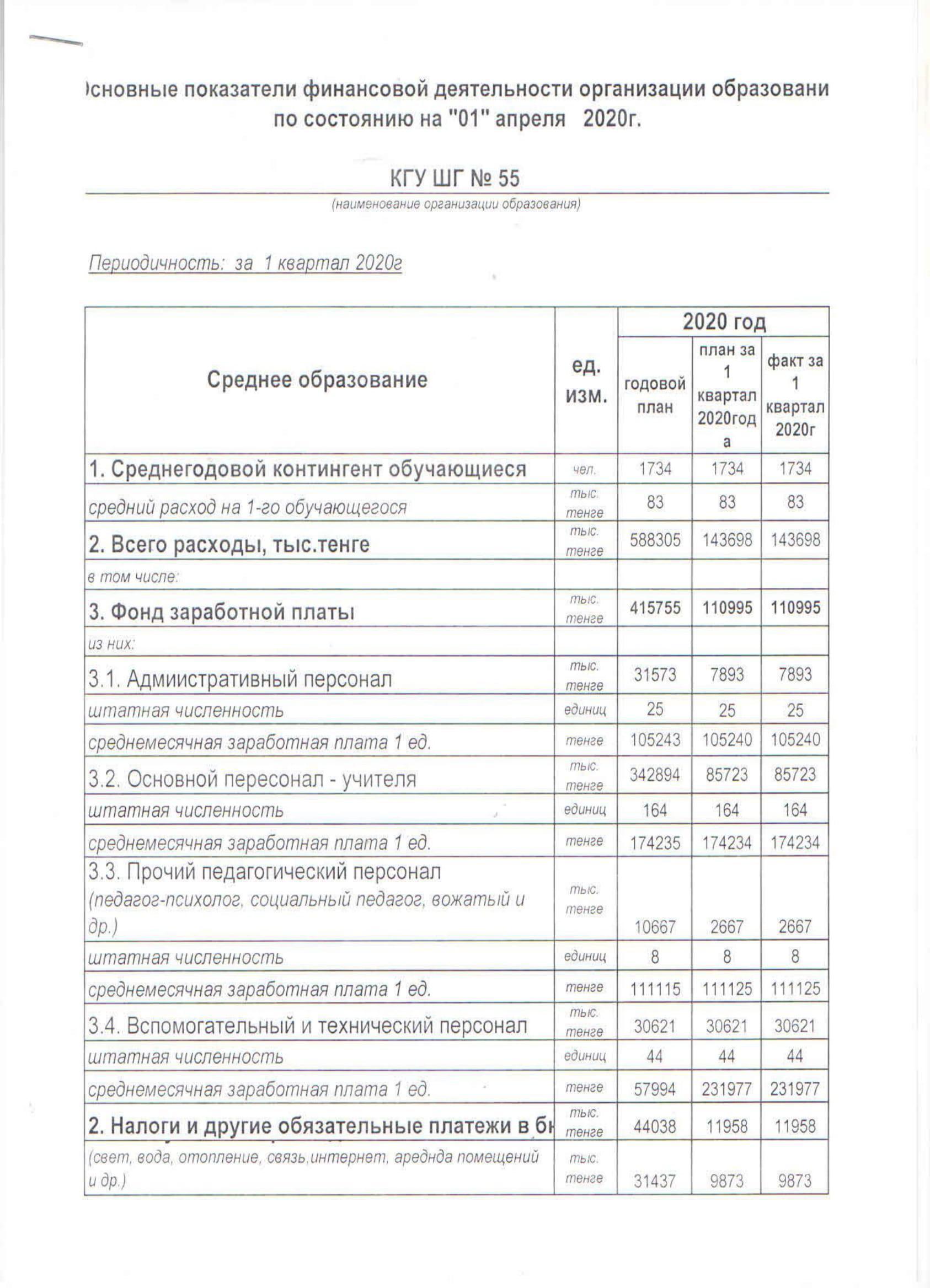 сәуір айындағы қаржылық есеп » СШ №55