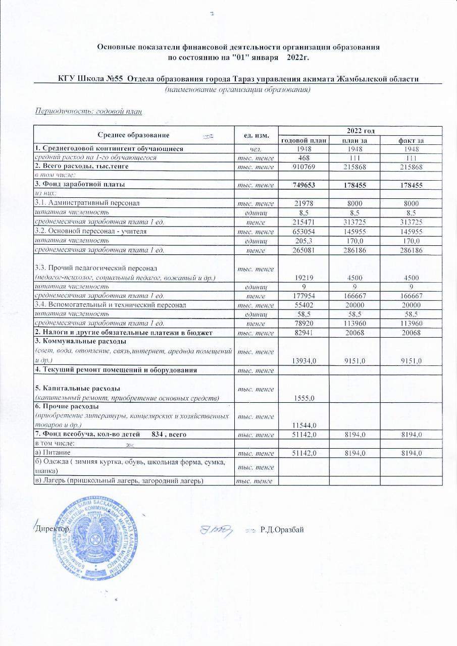 Основные показатели финансовой дейтельности организации образования » СШ №55
