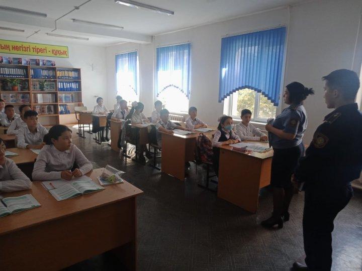 2022 жылы 05 сәуір күні Тараз ст.ЖПБ ӘПб аға инспекторы полиция майоры Л.Көпбаева және ӘПб инспекторы полиция аға лейтенанты Ә.Қалдарбек біздің №55 мектепке келіп, түсіндіру жұмыстарын жүргізді