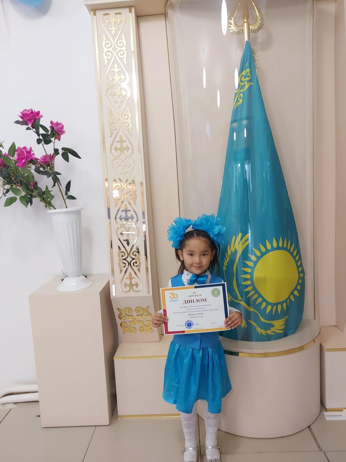 "Елін сүйген, елі сүйген Елбасы" атты байқаудың қалалық кезеңінің жүлдегері #55 орта мектебінің мектепалды даярлық сыныбының тәрбиеленушісі Бақберген Инабат Шерзатқызы