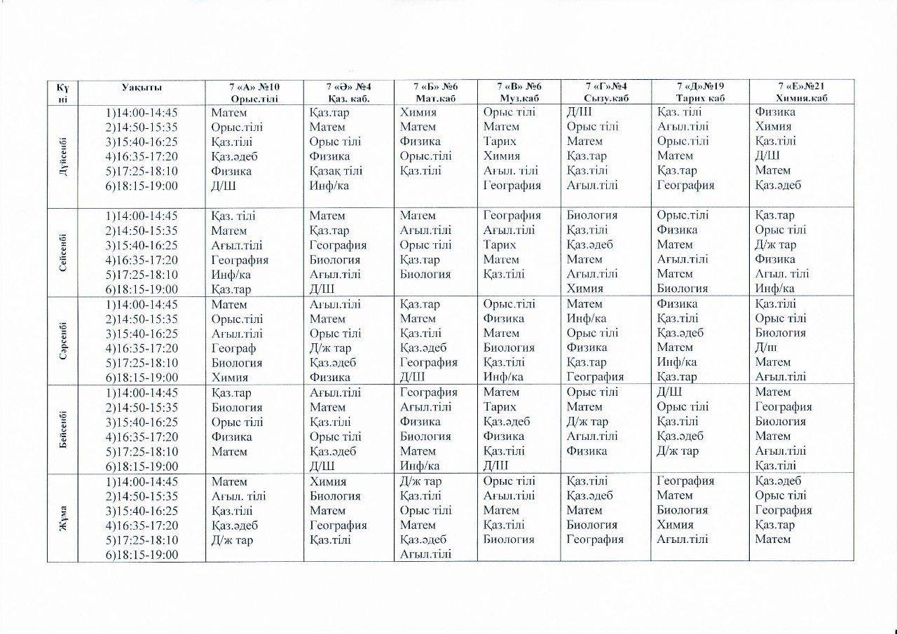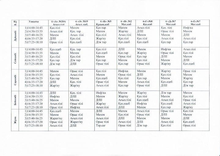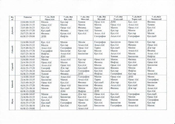 2021-2022 оқу жылындағы 5-6-7 сыныптарының 2 жарты жылдық сабақ кестесі