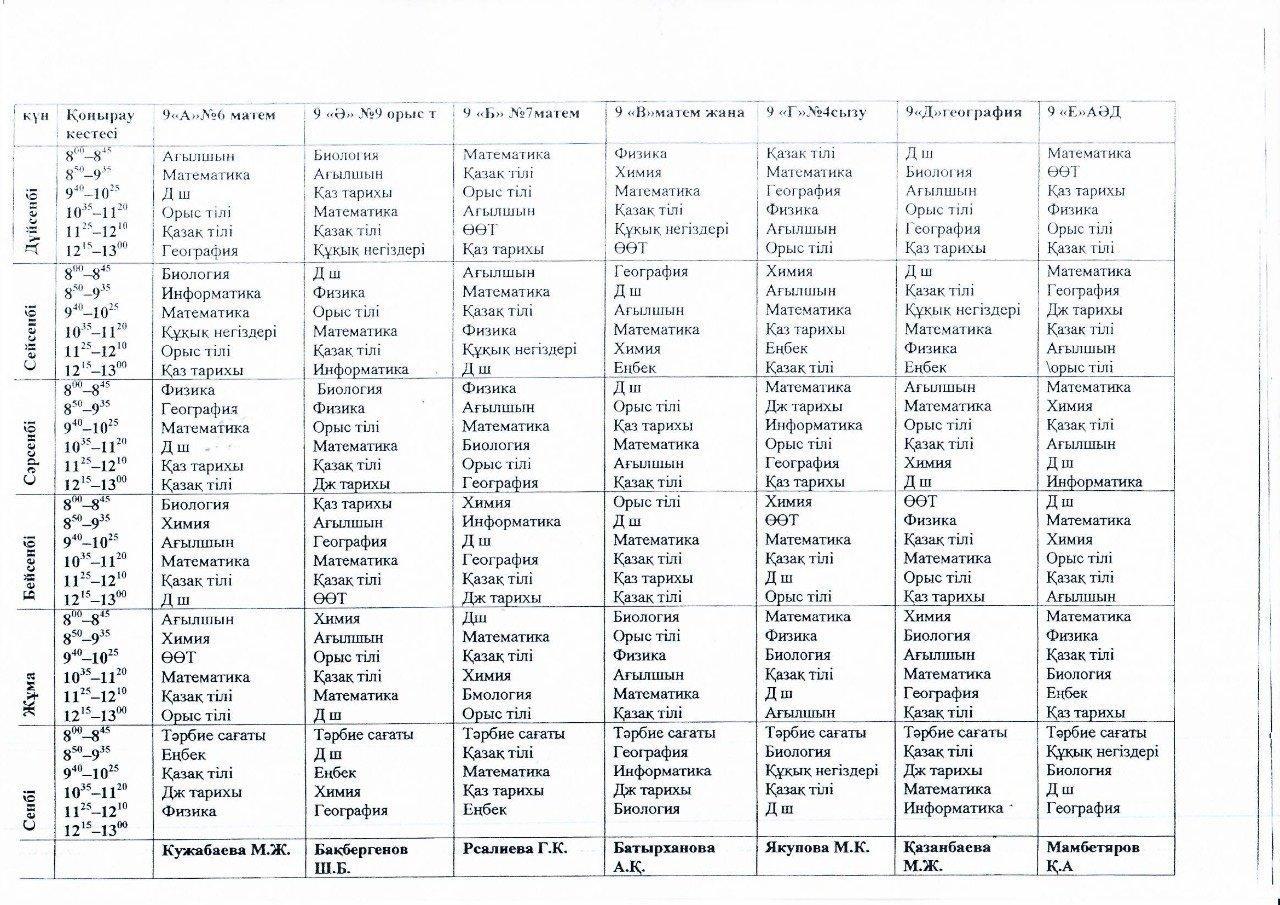 2021-2022 оқу жылындағы І жарты жылдық 8-9-10-11 сынып сабақ кестесі