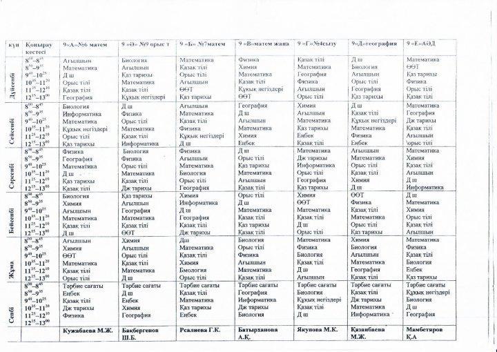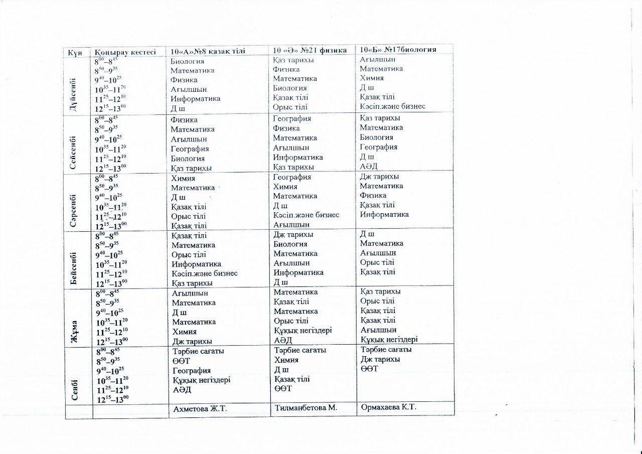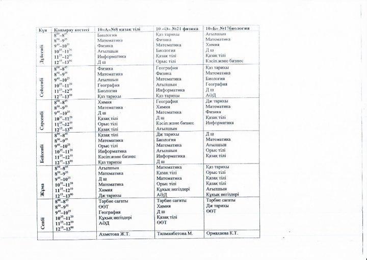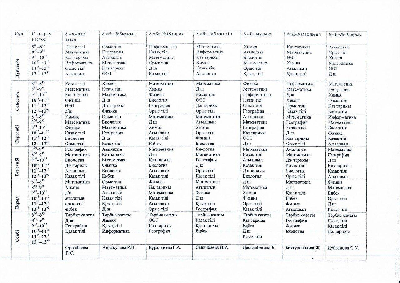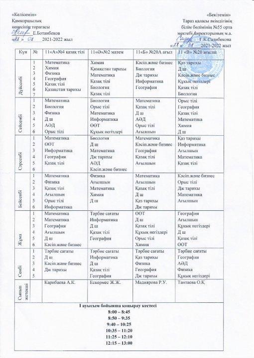 2021-2022 оқу жылындағы І жарты жылдық 8-9-10-11 сынып сабақ кестесі » СШ №55