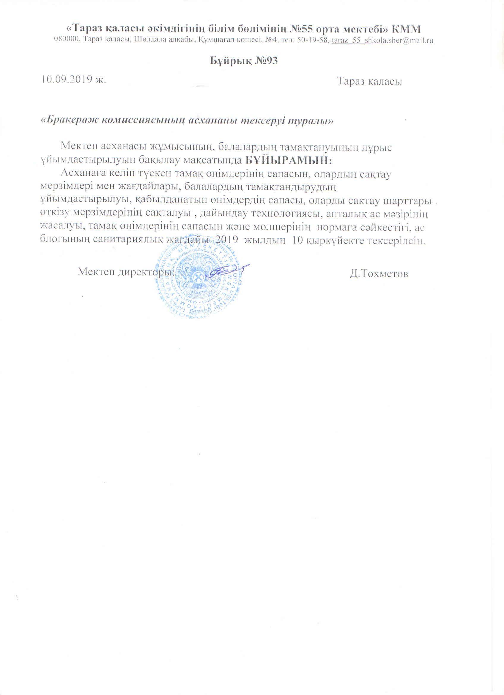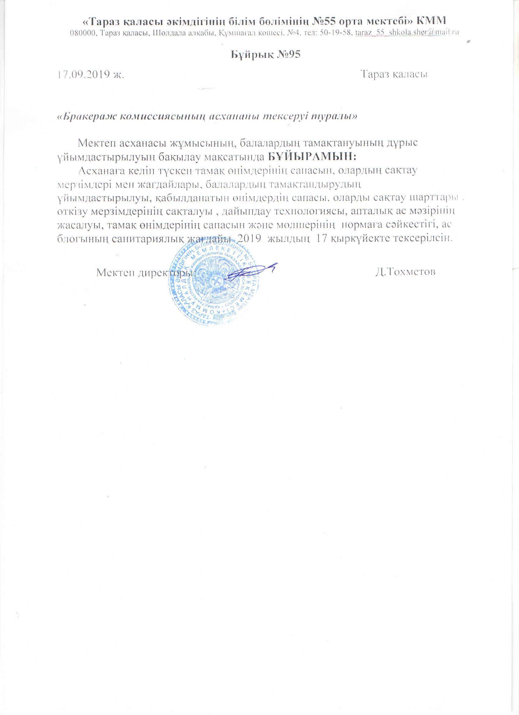 Брокераж комиссиясының қыркүйек айында асхана тексеруі » СШ №55