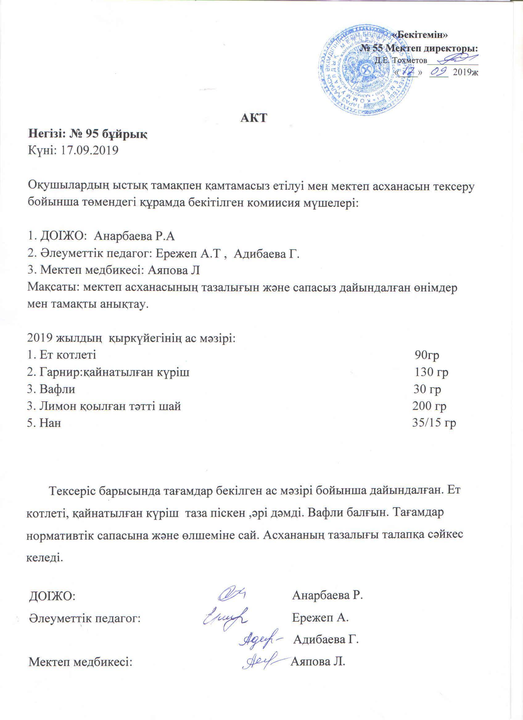 » » » Брокераж комиссиясының қыркүйек айында асхана тексеруі