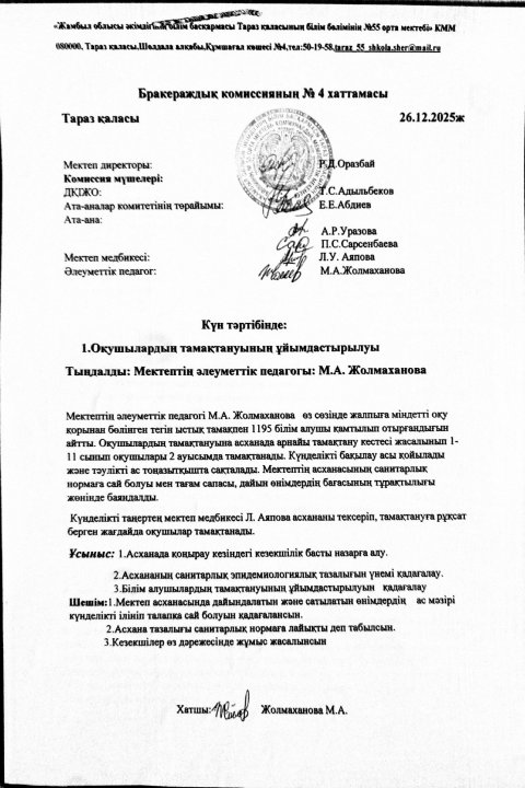 Бракеражды комиссияның №4 хаттамасы » СШ №55