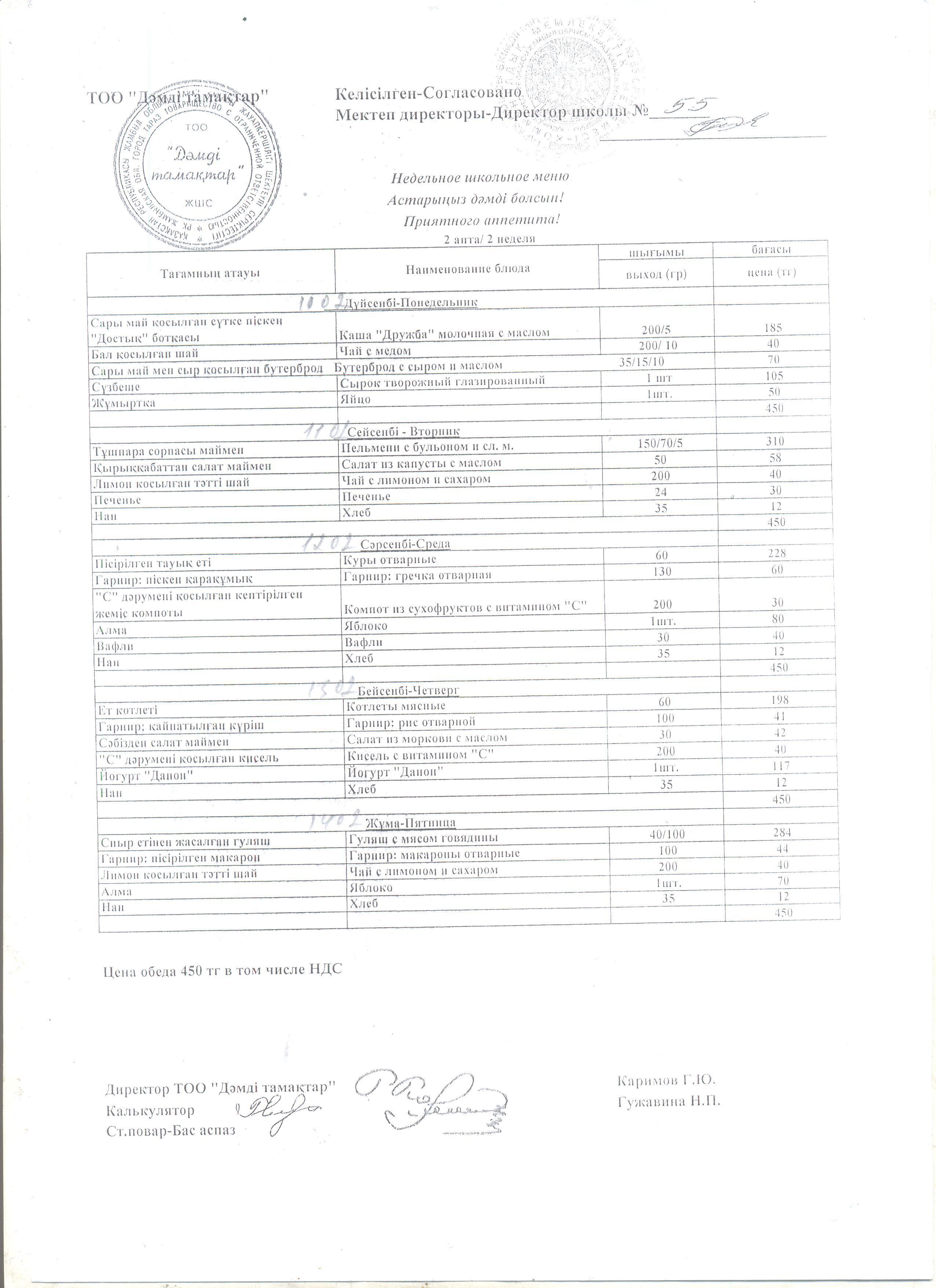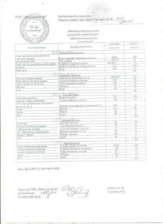 Тағамның өлшемі мен бағасы » СШ №55