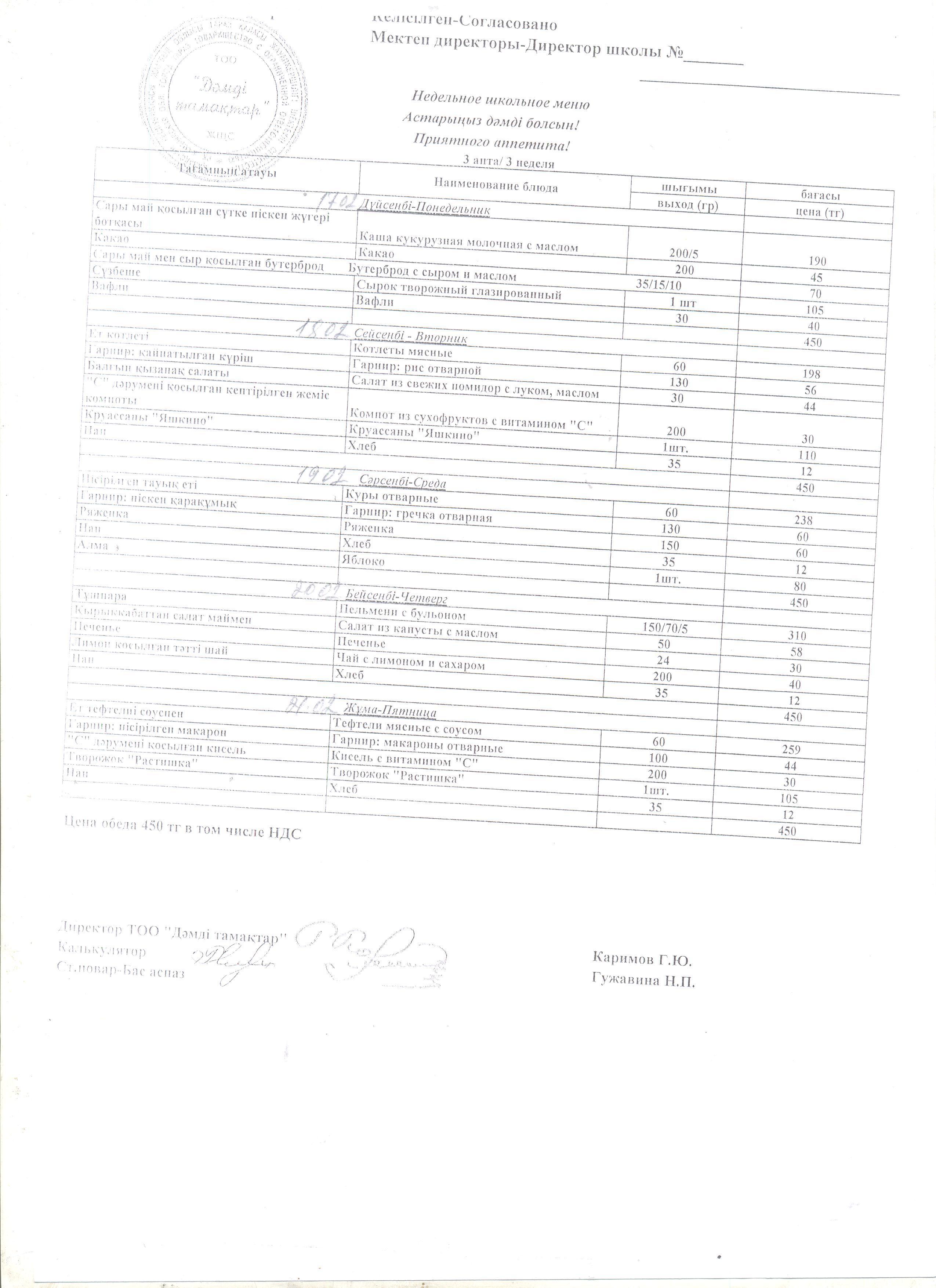 Тағамның өлшемі мен бағасы » СШ №55
